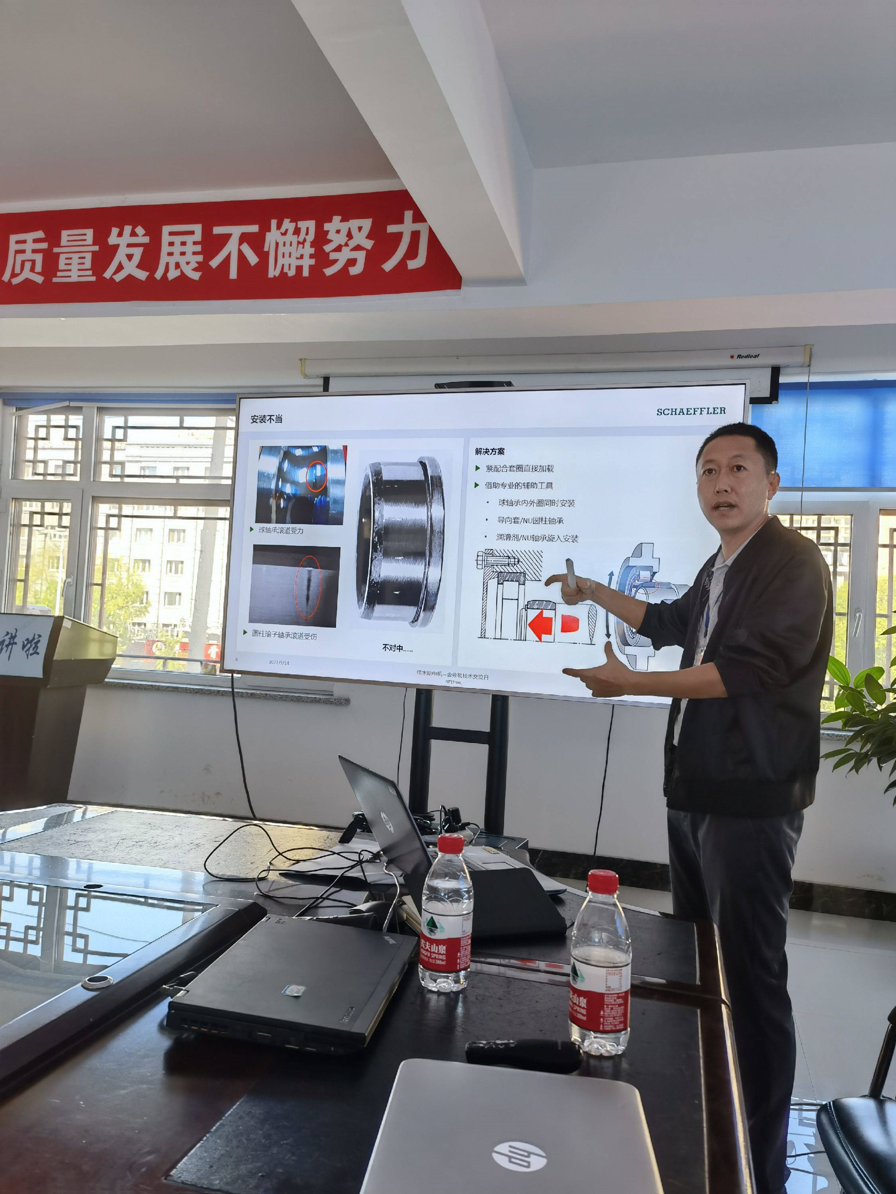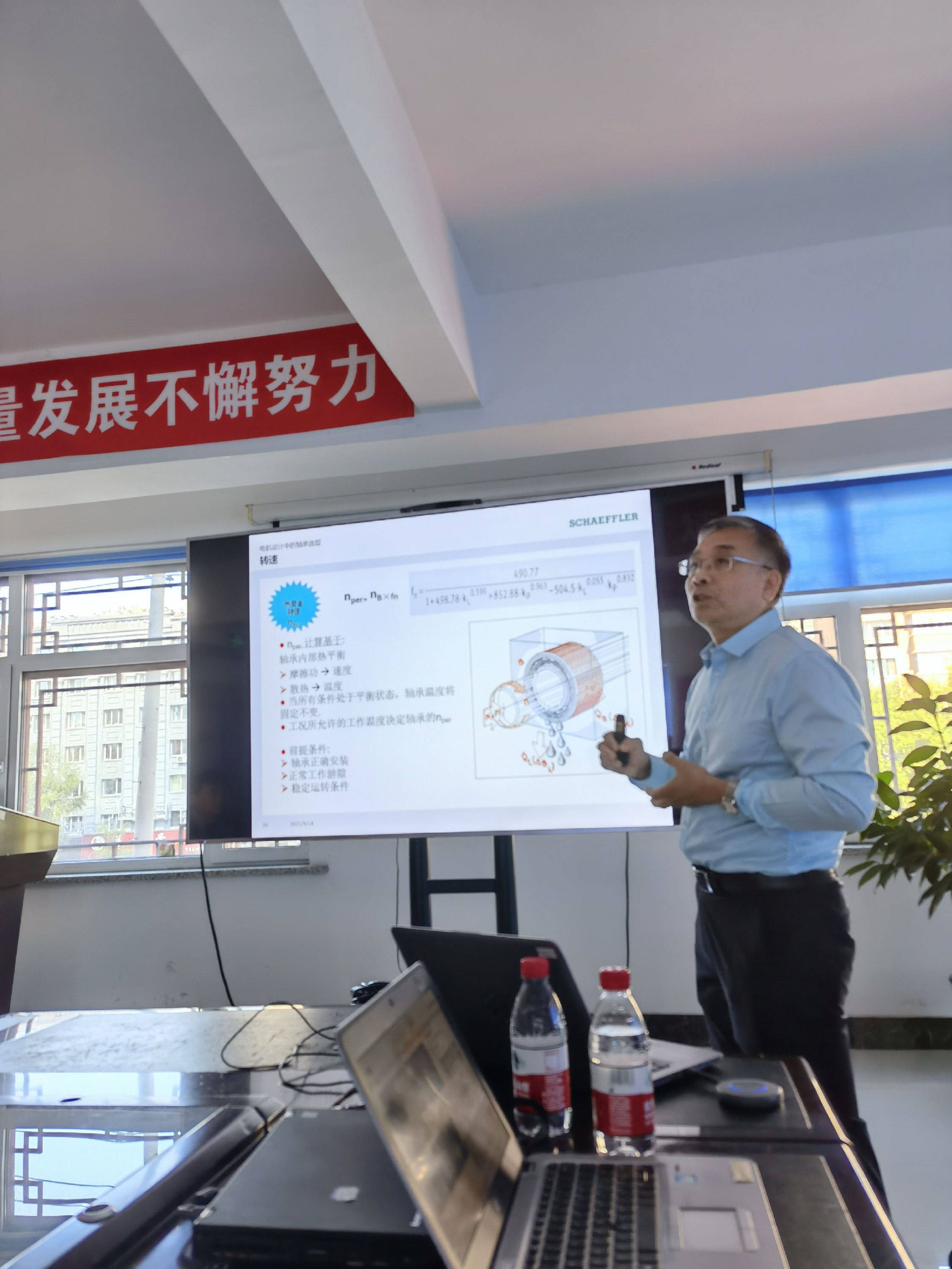 2021年9月14日我公司應(yīng)佳木斯電機(jī)股份有限公司邀請舉行專場FAG軸承技術(shù)交流會議。在舍弗勒(上海)貿(mào)易有限公司鼎力支持下張明義 、張之濱、劉元朋三位高級工程師出席技術(shù)交流會議并做相關(guān)技術(shù)培訓(xùn)。佳木斯電機(jī)股份有限公司設(shè)計部、工藝部、質(zhì)檢部等各部門科室領(lǐng)導(dǎo)共七十余人參加會議。